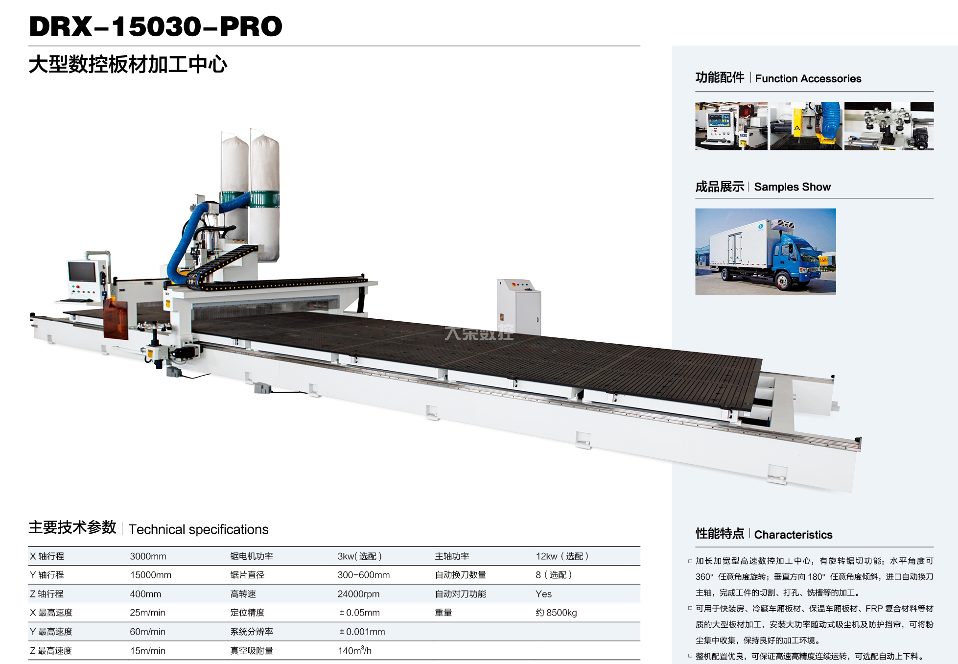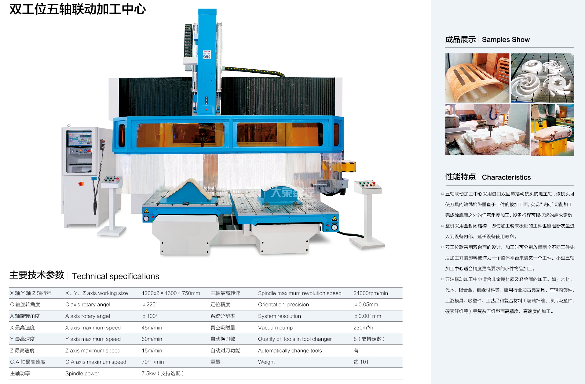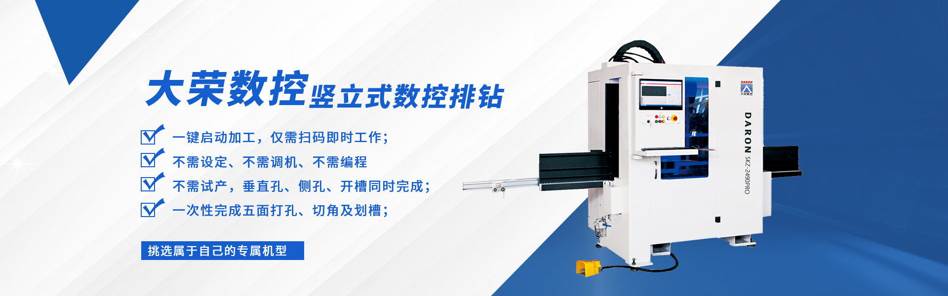 大榮偉業(yè)公司本著"品無(wú)止境,誠(chéng)信為本,追求卓越"的原則,精心投入 CNC 數(shù)控機(jī)械行業(yè),先后研發(fā)出:CNC 五軸聯(lián)動(dòng)加工中心、數(shù)控板材加工中心、數(shù)控板式家具生產(chǎn)線幾大系列十幾個(gè)規(guī)格的產(chǎn)品。被廣泛應(yīng)用于機(jī)械,科研院所,保麗龍加工、車輛內(nèi)飾、厚片吸塑件、鋁板、輕金屬、絕緣材料、各類木板材、木器、木門、模具、化工、廣告、石材加工等不同領(lǐng)域,并遠(yuǎn)銷世界各國(guó)。欣大榮公司借鑒國(guó)外技術(shù),采用原裝進(jìn)口優(yōu)質(zhì)配件,確保整機(jī)質(zhì)量。企業(yè)已通過(guò) ISO9001質(zhì)量體系認(rèn)證及 CE 認(rèn)證。